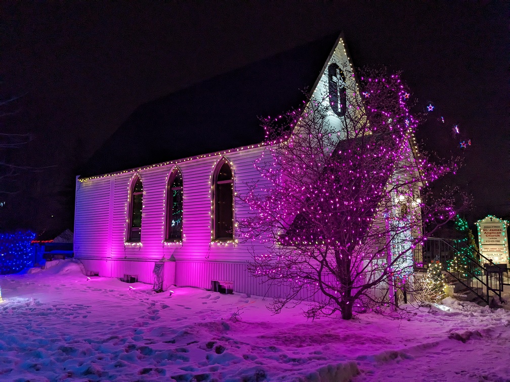 Sunday Worship at 10:30 a.m. Reverend Nash Smith Click here to see our Weekly Bulletin. Click here to read the Thanksgiving letter to the Parish St. James in pink for the Advent Week of Joy Visit the church any night to see the full light display St. James Nativity Scene 2024 St. James Christmas Schedule 2024 Click to see the St. James Remembers Photo Exhibit on past parishioners Click to see our 2024 Annual Vestry Report Click here to see memories of 2019 in photos Click here to see memories of 2018 in photos Click here to see memories of 2017 in photos Click here to see memories of 2016 in photos lick here to see the 2016 Christmas Light Show Click here to see photos from our 2014 Strawberry Social Click here to see memories of Christmas 2014 Light Show
